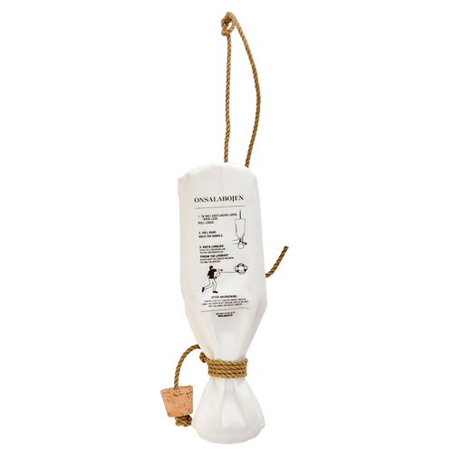 Make your Skagerak lifebuoy complete with an 18 meter long throw line, rescue line made of 6mm synthetic hemp. The line floats in the water. The throwing line was easily attached to the lifebuoy with a bowline.